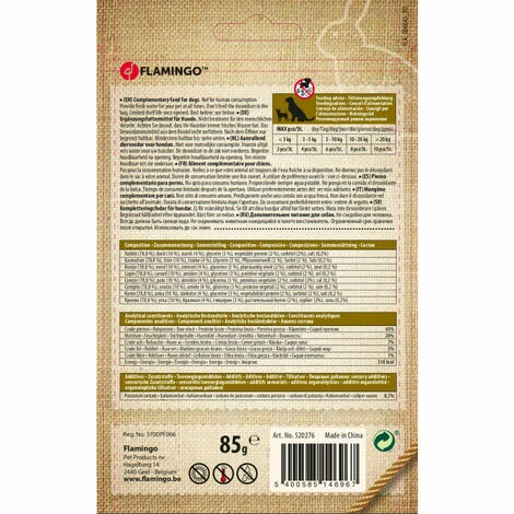 - composition: Lapin (78,8 %), canard (10 %), amidon (4 %), glycérine (3 %), protéine végétale (2 %), sorbitol (2 %), sel (0,2 %)