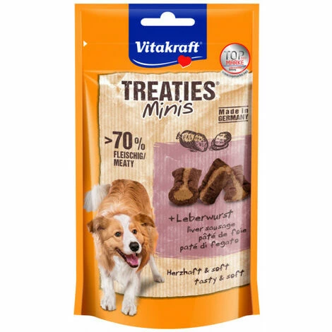 Les friandises pour chien Treaties Mini Bits Vitakraft, avec leur texture et leur consistance inédite et moelleuse, vont ravir vos compagnons de petite taille.