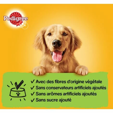 Pedigree . Des aliments complets en boîtes, en sachets fraîcheur et en croquettes, ainsi que de délicieuses récompenses pour tous les chiens.