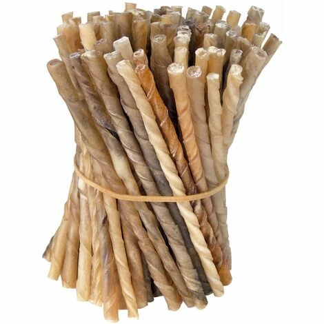 Les bâtonnets torsadés sont très efficaces pour lutter contre le tartre et la mauvaise haleine.Cette friandise 100% peau de buffle sera idéale en récompense pour les petits ou grands chiens.2 diamètres disponibles. Bâtonnets torsadés par 100 en peau de buffle. Friandise 100% naturelle. Ces bâtonnets permettront à votre chien de mastiquer de prendre soin de sa santé bucco-dentaire. Permet de lutter efficacement contre le tartre et la mauvaise haleine. Les bâtonnet en peau de buffle sont parfaits en récompense ou pour occuper votre chien. Très appétents pour votre animal. Dimension : environ 12,5 cm 2 diamètres disponibles : Taille S : diamètre 3 à 6 mm Taille M : diamètre 7 à 8 mm